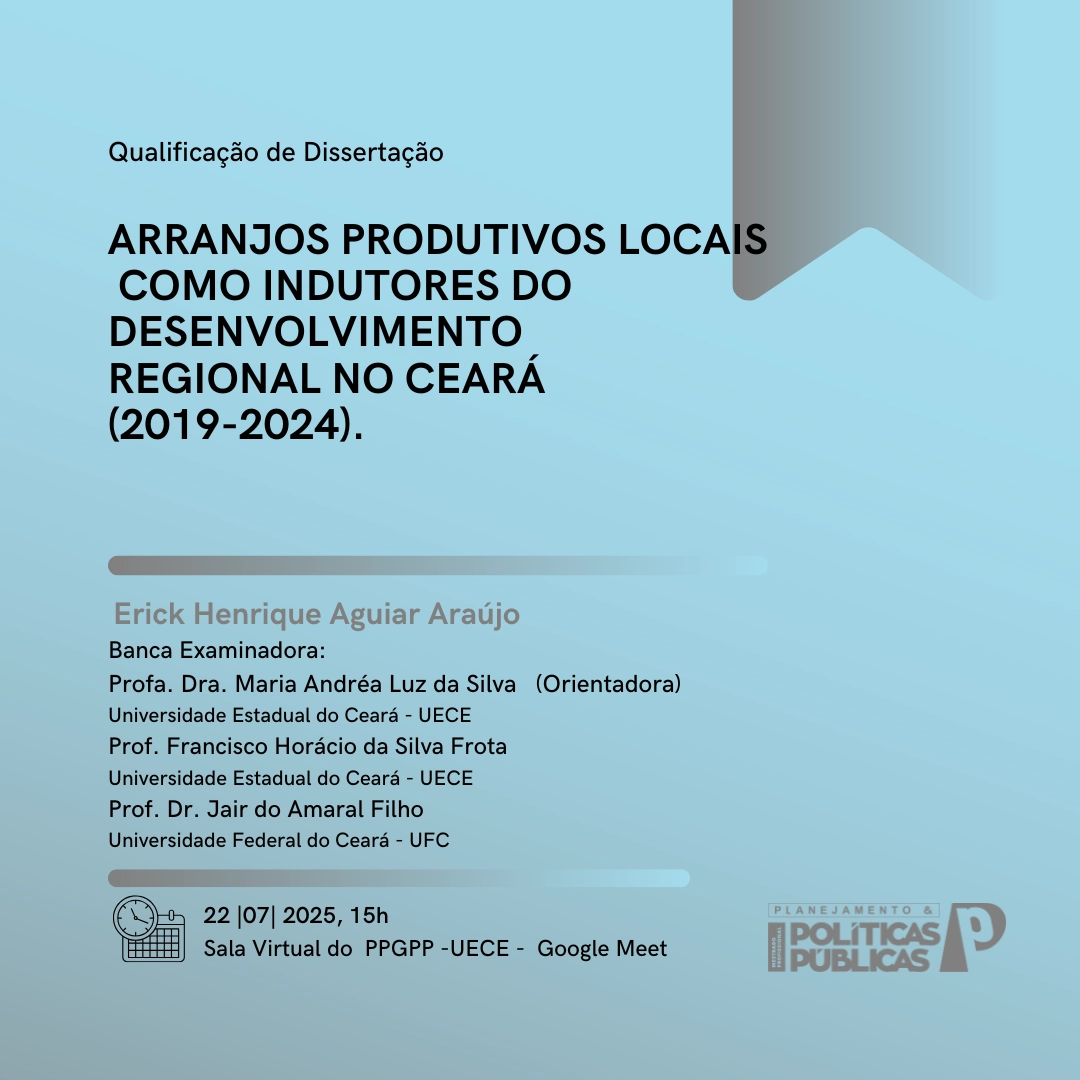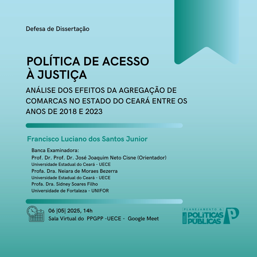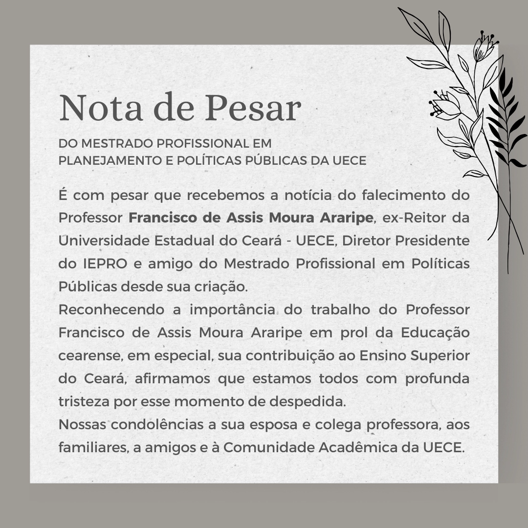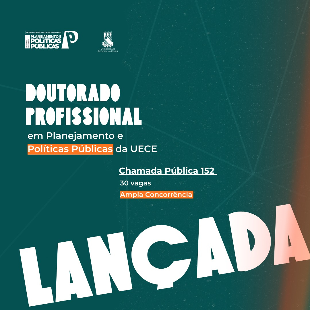 Campus do Itaperi - Bloco de Estudos Sociais Aplicados - CESA / Av. Silas Munguba, 1.700 - 60.714-903 - Fortaleza - CE - BrasilFones: (85) 3101.9880/ 99422.8990 / E-mail: politicaspublicas@uece.br